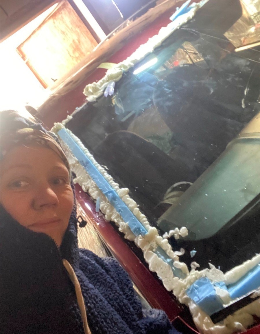 We rode bicycles to the car market, it was already destroyed, and found the windshield under shelling. We attached it with mounting foam. Repairs were made using candlelight in the garage. At dawn, I came back to Halabuda, worked my last day, and handed over. And then I found out that there was a car, a jeep with manual transmission, and a female driver was needed.